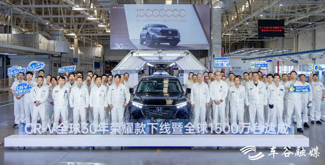 9月15日11時(shí)40許,在位于武漢經(jīng)開區(qū)的東風(fēng)本田第三工廠總裝車間,一輛東風(fēng)本田CR-V全球30年榮耀款緩緩駛下生產(chǎn)線。同日,CR-V全球累計(jì)銷量突破1500萬(wàn)臺(tái),成為全球最受歡迎的家用SUV之一。