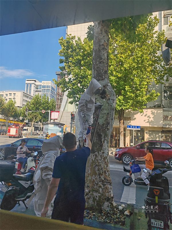 荊楚網(wǎng)(湖北日報網(wǎng))訊(通訊員 甘厚芳 周佳穎)近日,在武昌區(qū)黃鶴樓街道新就業(yè)群體服務驛站門口,一棵梧桐樹上悄然聚集起蜂群,逐漸形成蜂巢,對過往行人及驛站休憩人員構成安全隱患。恰在驛站休息的外賣騎手吳杰與李志虎發(fā)現(xiàn)這一情況后,迅速反應、主動作為,展現(xiàn)出高度的責任意識和應急處置能力。