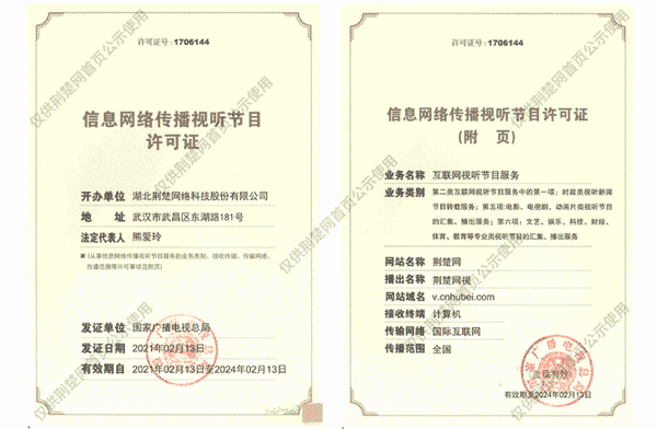 廣播電視節(jié)目制作經(jīng)營許可證(鄂)字第00011號