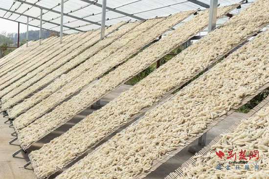 而這樣的環(huán)境催生了“豆絲”這一鄂州傳統(tǒng)美食。除了大米外,綠豆、黃豆、葛根等“豆絲”原材料生長(zhǎng)在山溝、溪邊、林中?!懊磕耆攵?,幾乎家家起大灶開(kāi)始制作豆絲,風(fēng)干后可以留存整個(gè)冬天。”周楊介紹。