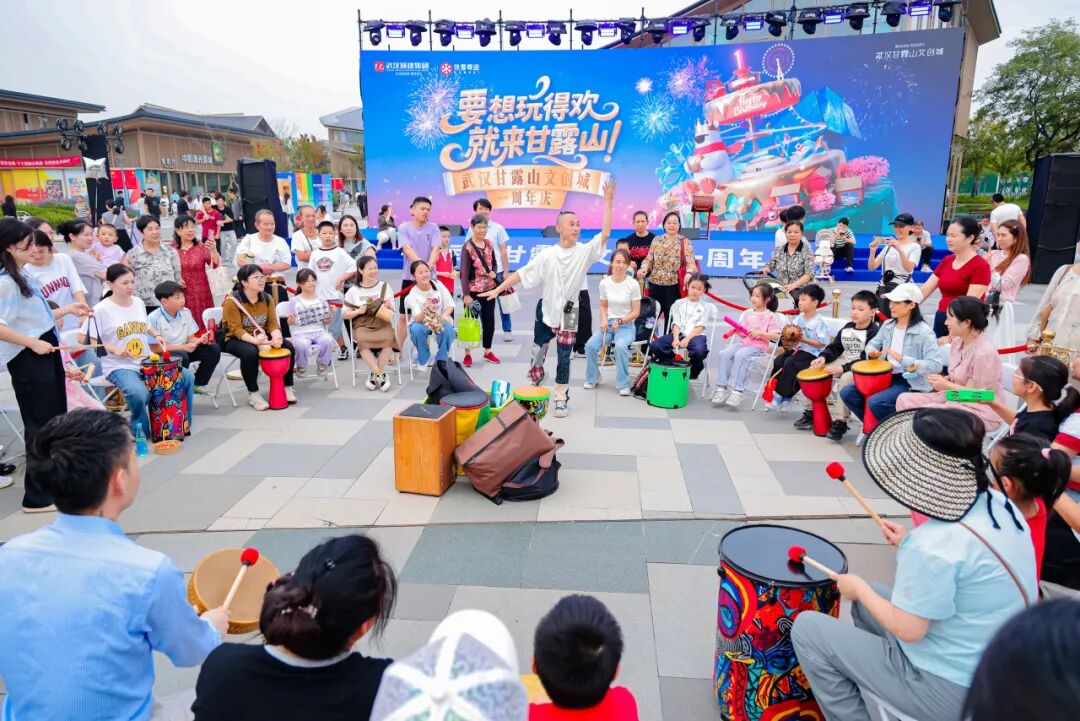 廣場正中,幾十名鼓手圍坐成圈,使用非洲鼓,在引導(dǎo)師帶領(lǐng)下共同演奏出悅耳的音樂。不少游客紛紛加入“百人手鼓派對(duì)”活動(dòng),學(xué)習(xí)非洲鼓演奏,現(xiàn)場氣氛熱烈。