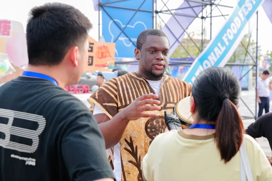 在非洲鼓互動(dòng)環(huán)節(jié),就讀于中國地質(zhì)大學(xué)(武漢)的非洲人馬丁,用流利普通話演唱《朋友》,引起現(xiàn)場陣陣驚呼。接受媒體采訪時(shí),他又即興表演了一首《我愛你中國》,他說,自己在武漢已經(jīng)待了三年,“最愛吃熱干面”。