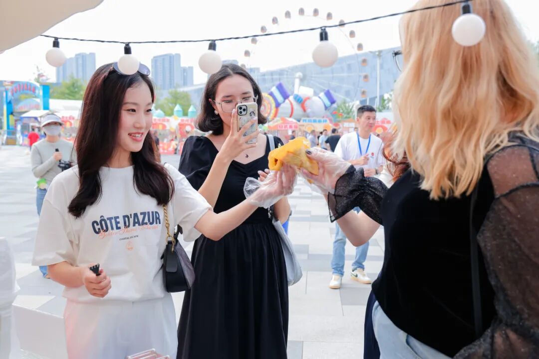 在廣場四周,美食市集也拉開帷幕,40余家全國人氣品牌及黃陂本土特色攤位紛紛亮出他們的“拿手菜”。黎黃陂路傳奇牛排店帶來厚切肉眼牛排;武漢本土精釀品牌“水豚釀造”攜手“糖豆咖啡”,提供手工精釀與現(xiàn)磨意式咖啡。泰式奶茶、手打檸檬茶、爆蛋吐司、辣炒年糕等亞洲街頭小吃,讓游客大飽口福。值得一提的是,來自杭州的原創(chuàng)毛絨品牌“雨過山”首次登陸武漢,以其治愈系設(shè)計(jì)成為打卡熱點(diǎn)。