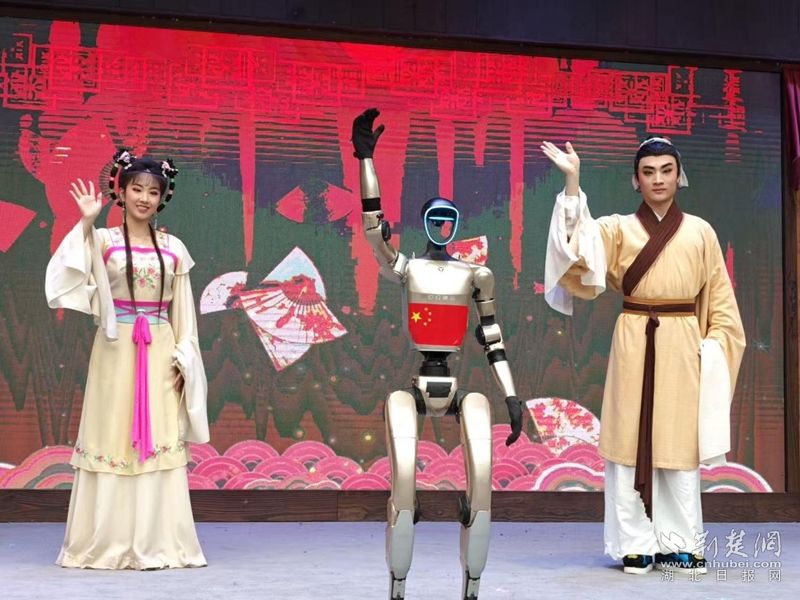 荊楚網(wǎng)(湖北日?qǐng)?bào)網(wǎng))訊(通訊員王晶、費(fèi)留燦)國慶中秋假期,在黃梅縣東山問梅村,當(dāng)黃梅戲《女駙馬》的經(jīng)典唱段響起,機(jī)器人踩著婉轉(zhuǎn)唱腔靈活擺臂、轉(zhuǎn)身,復(fù)刻戲曲身段的韻味;戲腔未落,身著傳統(tǒng)獅頭裝扮的機(jī)器狗躍至臺(tái)前,跟著鼓點(diǎn)騰躍撲閃,鬃毛翻飛間盡顯靈動(dòng),引得游客紛紛舉手機(jī)拍攝,鏡頭緊追這些“特殊演員”。