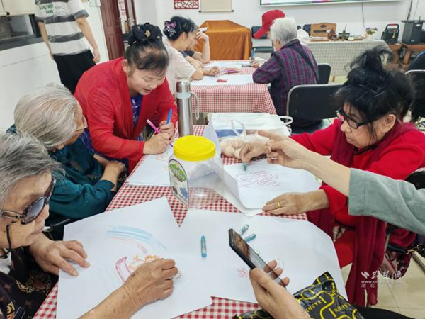 “香遇畫時光”主題日聚焦心理關(guān)懷,提供自然風(fēng)景、幾何圖案等多元主題線稿,搭配植物精油香薰?fàn)I造療愈氛圍。志愿者化身“心理陪伴員”,指導(dǎo)握筆涂色技巧,與老人嘮家常、分享生活故事?;顒硬粌H豐富了老年人的精神生活,更通過藝術(shù)療愈延伸至心靈慰藉,為構(gòu)建老年友好型社區(qū)注入新活力。