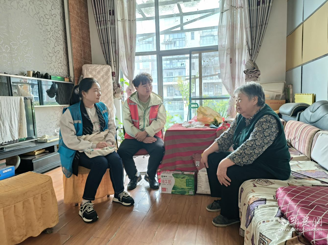 活動中,社區(qū)工作人員走進(jìn)老年人家中,傾聽心聲、傳遞溫暖。在88歲胡婆婆家中,工作人員耐心細(xì)致地為其辦理了高齡認(rèn)證,并與老人圍坐在一起拉家常,細(xì)心詢問他們的身體狀況和生活情況,送上慰問品與祝福,以實際行動詮釋社區(qū)的溫暖與牽掛。