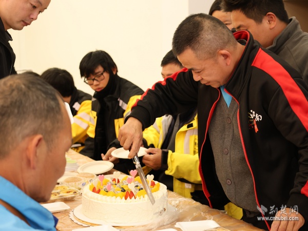美團(tuán)站點(diǎn)負(fù)責(zé)人為壽星們送祝福。 通訊員供圖