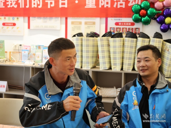 為傳承敬老溫情,工作人員為騎手們準(zhǔn)備了精美祝福賀卡,鼓勵(lì)他們將對老人們健康長壽、幸福安康的祝愿傾注筆端。在街道發(fā)出敬老志愿服務(wù)倡議后,8名新就業(yè)群體現(xiàn)場響應(yīng),加入“黃鶴樓街黃小‘蜂’敬老服務(wù)隊(duì)”,莊嚴(yán)宣讀入隊(duì)誓詞。