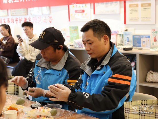 在制作青團(tuán)時(shí),現(xiàn)場同步開展“黃鶴家人茶話會(huì)”,搭建起代際對話的橋梁?;ǖ躺鐓^(qū)紫陽之星小區(qū)黨支部書記金文芳講述了小區(qū)變遷故事,傳遞長者對騎手們的關(guān)懷;新就業(yè)群體入黨積極分子樂倩倩則分享了送餐途中幫扶孤寡老人的暖心經(jīng)歷。兩代人的真誠交流深化了情感共鳴,現(xiàn)場洋溢著家人般的溫暖氛圍。