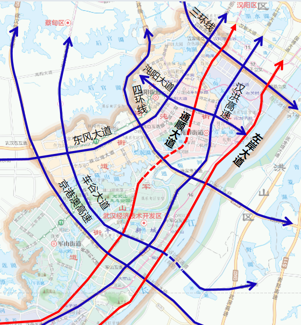 通順大道是武漢經(jīng)開(kāi)區(qū)繼東風(fēng)大道、江城大道、左岸大道(沿江大道)之后連接主城區(qū)的第四條交通動(dòng)脈,也是大漢陽(yáng)片區(qū)交通一體化的重要組成部分。