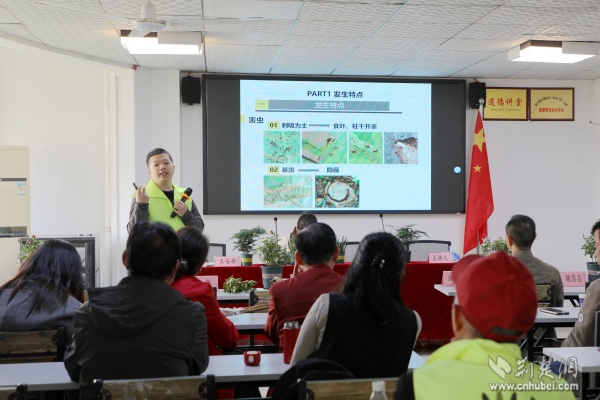 武漢市園林科學研究院工程師裴張新帶來秋冬季病蟲害防治小課堂。 通訊員供圖