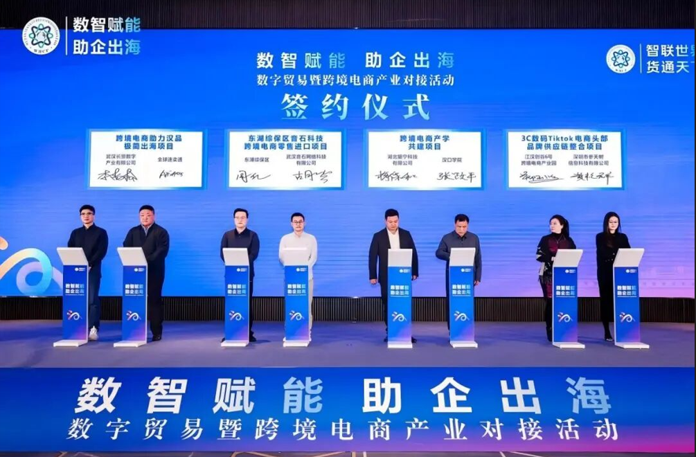 本次對(duì)接活動(dòng)強(qiáng)化產(chǎn)學(xué)研合作對(duì)接,共促成10項(xiàng)數(shù)字貿(mào)易和跨境電商產(chǎn)業(yè)鏈生態(tài)鏈合作項(xiàng)目在漢落地,涉及數(shù)字產(chǎn)業(yè)、物流供應(yīng)鏈、智庫(kù)建設(shè)、產(chǎn)學(xué)共建、人才培養(yǎng)等多個(gè)領(lǐng)域。例如,專(zhuān)注企業(yè)出海營(yíng)銷(xiāo)的數(shù)字服務(wù)商易海創(chuàng)騰將在武漢設(shè)立華中區(qū)加速服務(wù)運(yùn)營(yíng)中心,浙江天誠(chéng)供應(yīng)鏈、深圳參天樹(shù)信息科技等優(yōu)質(zhì)服務(wù)商也將加大在漢業(yè)務(wù)布局。