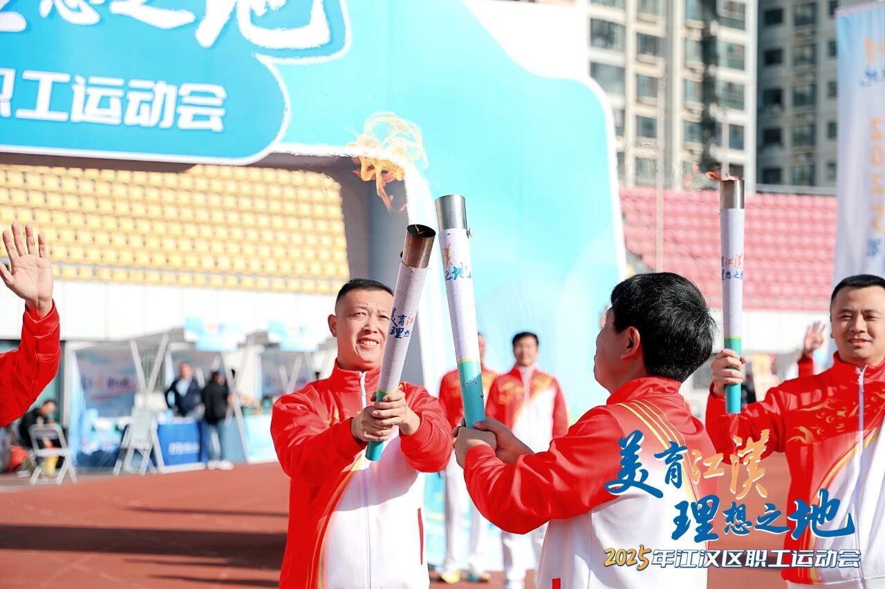 開幕式上,火炬?zhèn)鬟f成為最激動人心的環(huán)節(jié)。前期龍王廟畔莊嚴采集的火種,承載著楚地先民的開拓精神與新時代職工的奮斗激情,穿越江漢關(guān)、長江書店、中共五大會址、漢口火車站等江漢地標抵達主會場。