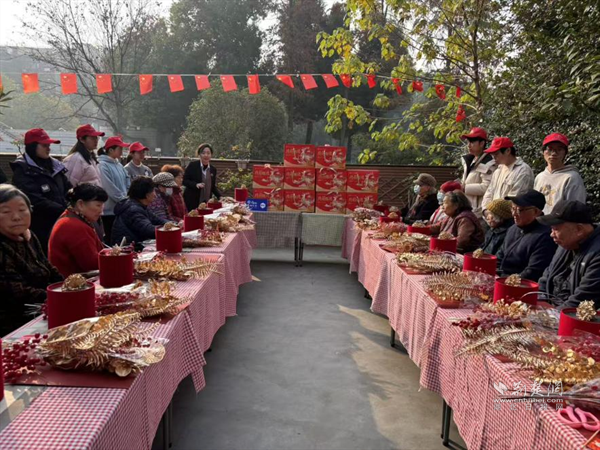 為鍛煉老人動手能力與思維敏捷度,活動設趣味手工環(huán)節(jié)。老人們在社區(qū)工作人員與武大學生志愿者指導下,將干花、仿真花細心插進裝飾桶?,F(xiàn)場笑聲不斷,老人們舉著作品展示、合影,既收獲成就感,又拉近鄰里距離,傳遞社區(qū)溫情。