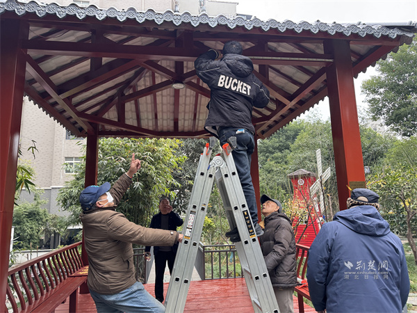 修繕涼亭。 通訊員供圖