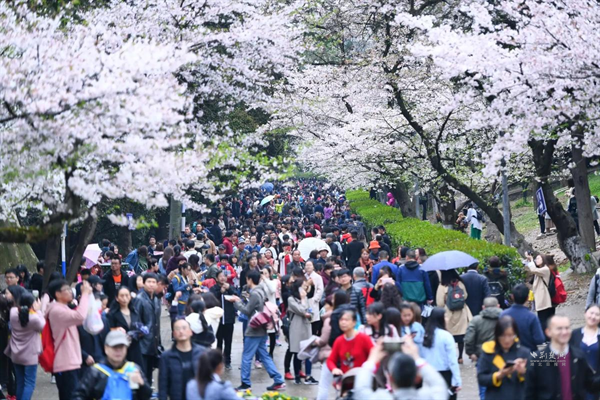 武漢大學游客年接待量約50萬人次,隨之升溫的還有毗鄰的東湖村與凌波門景點。