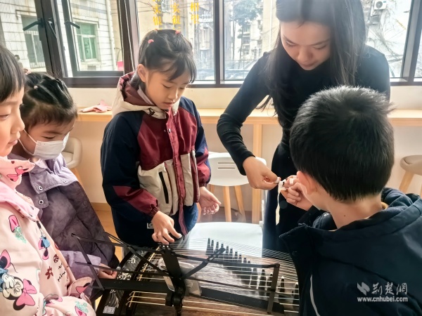 當(dāng)天上午,黃鶴書(shū)房?jī)?nèi)箏聲潺潺,以“琴潤(rùn)書(shū)香遇知音”為主題的古箏生活美學(xué)雅集在這里上演。二十余位居民齊聚一堂,在專業(yè)老師的帶領(lǐng)下,共同走進(jìn)古箏的悠遠(yuǎn)世界。