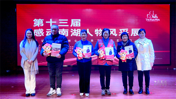 風(fēng)采展上,12位(個)感動人物(團(tuán)體)分批上臺接受紀(jì)念相冊。他們中,有退休仍發(fā)光發(fā)熱的老黨員,有緊急送藥的外賣小哥,還有義務(wù)辦學(xué)服務(wù)老人的社區(qū)大學(xué)校長等。他們崗位平凡,卻用善舉傳遞溫暖,初心赤誠,點(diǎn)亮南湖向善之光。