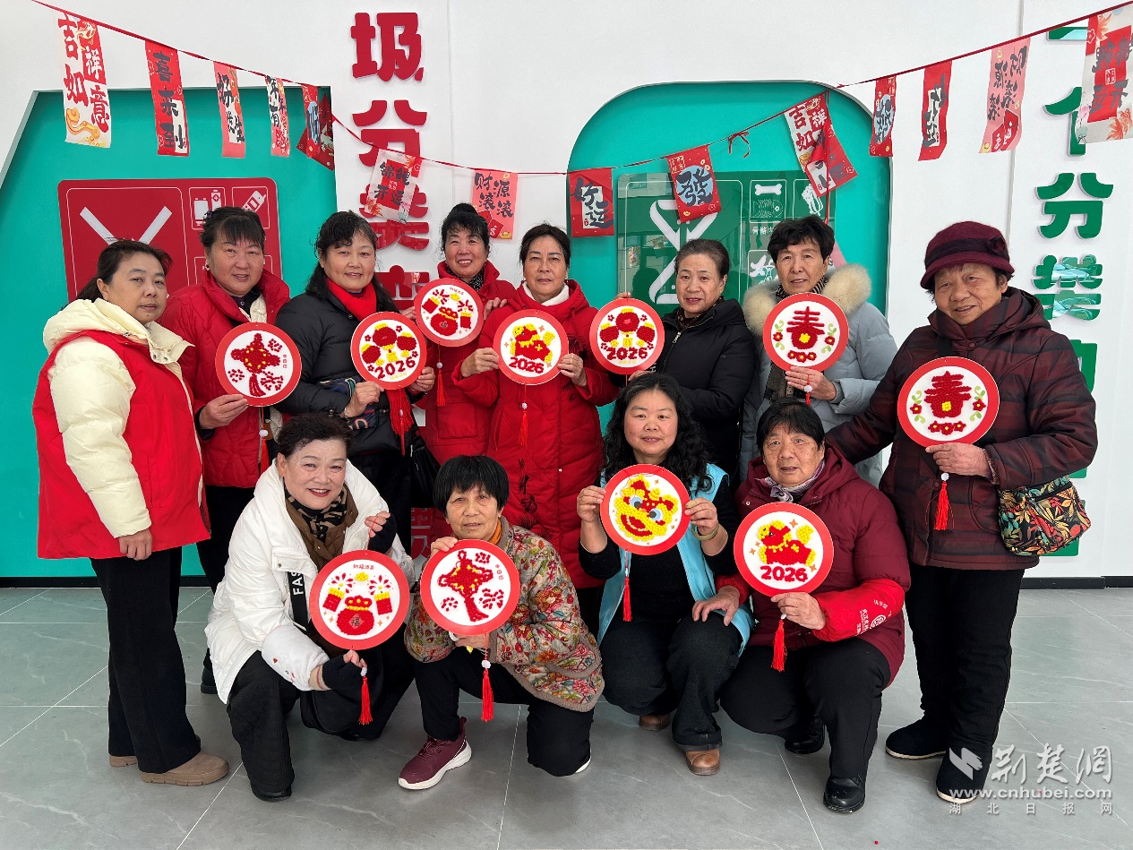 活動現(xiàn)場大家拿著粘貼畫手工作品合影中。通訊員供圖