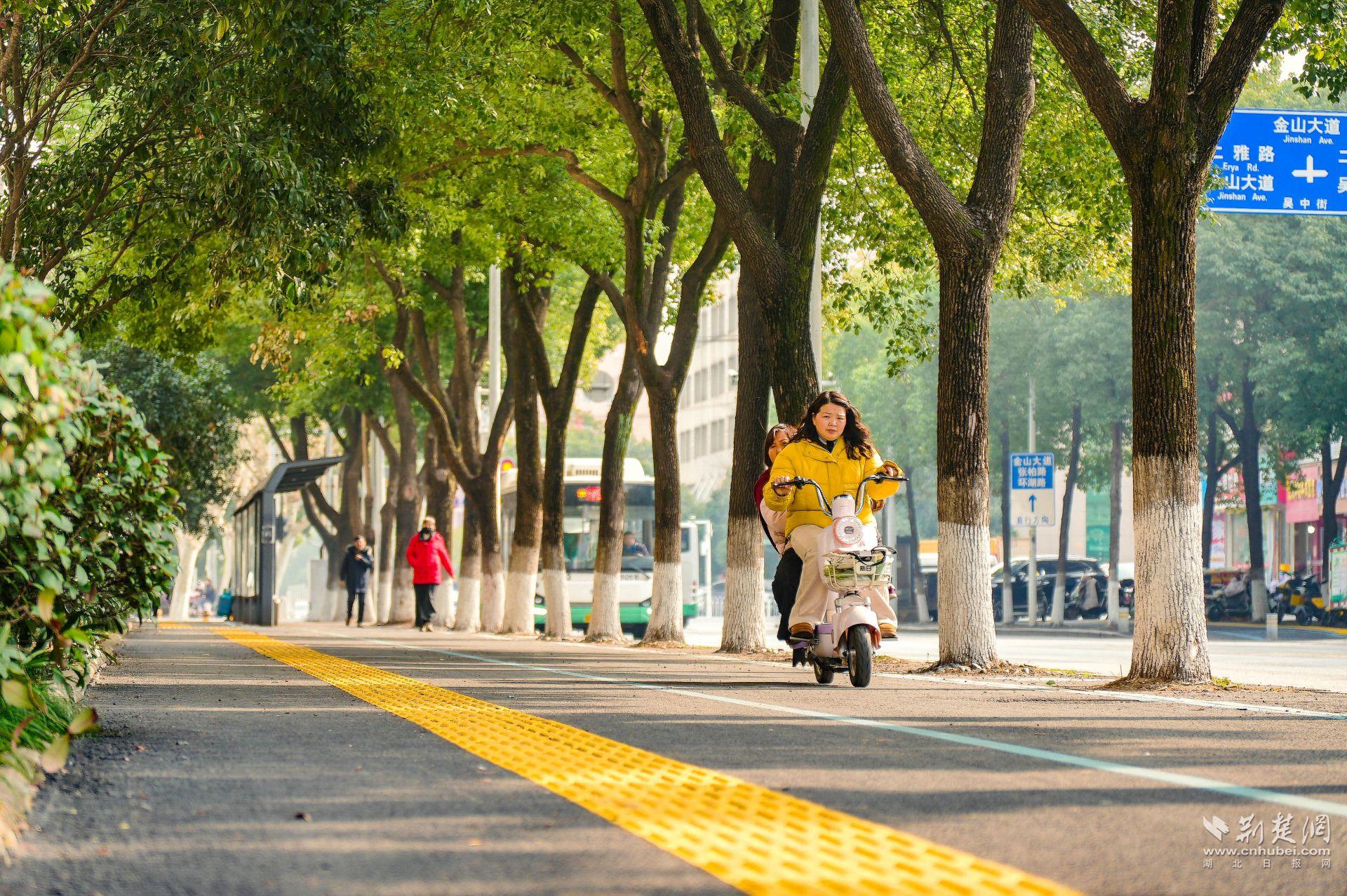 另一個(gè)明顯變化是,人行道旁多出了一條清晰的非機(jī)動(dòng)車道。過去,吳中街沒有專門的非機(jī)動(dòng)車道,人車混行存在隱患?,F(xiàn)在,“人非共面”的模式讓騎行與步行各自有序,盲道也同步更新,安全系數(shù)大幅提升。