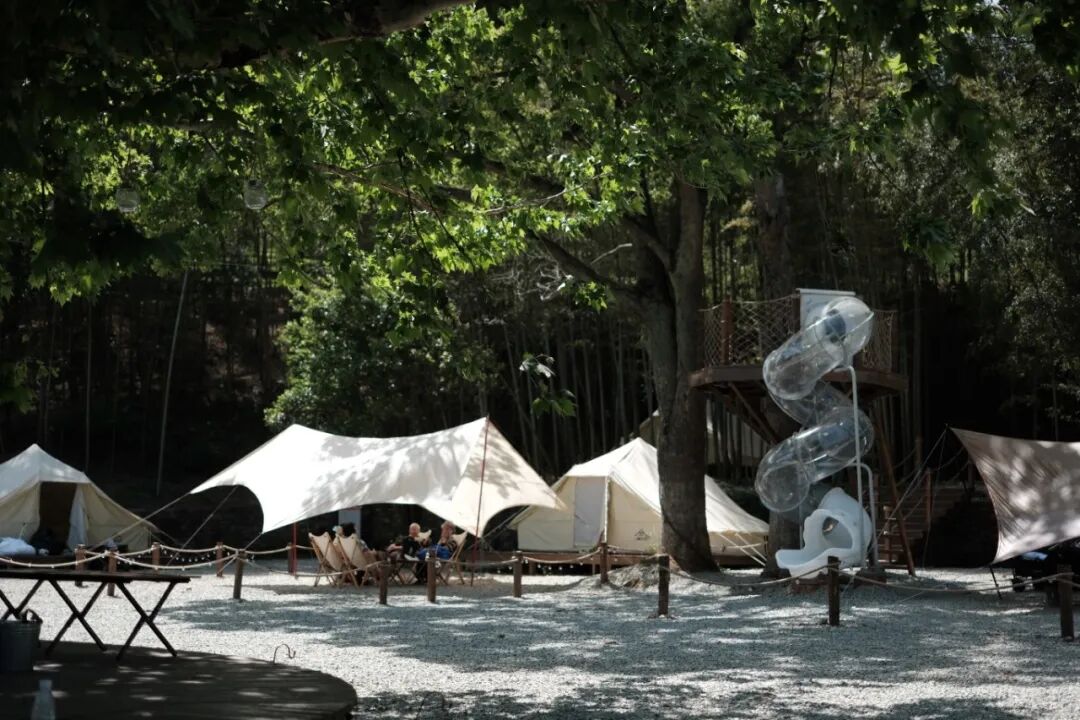 自帶空調(diào)的豪華帳篷,甩手就能入住;還可以體驗(yàn)多種戶外休閑項(xiàng)目,如射箭、滑滑梯、秋千、垂釣溯溪等,還有不定期音樂(lè)會(huì)、露天電影等各類主題活動(dòng)。