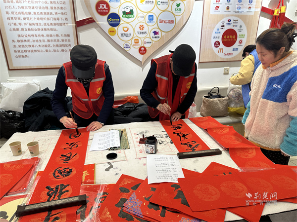 活動現(xiàn)場張燈結(jié)彩,福字、春聯(lián)相映成趣,處處洋溢著喜慶祥和的節(jié)日氣息。書法志愿者現(xiàn)場揮毫潑墨,一筆一畫寫下新春祝福,一幅幅寓意吉祥的春聯(lián)與福字深受大家喜愛,戶外勞動者們駐足欣賞、挑選心儀對聯(lián),在墨香中提前感受春節(jié)的儀式感。