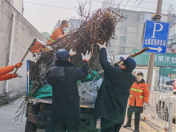 針對道路兩側(cè)影響視線和通行的雜亂枝條,城管隊(duì)員操作油鋸進(jìn)行修剪,環(huán)衛(wèi)工人和志愿者們將修剪下的枝葉歸堆整理、裝車清運(yùn)。隨后,大家深入停車場周邊區(qū)域,合力搬運(yùn)廢棄的舊沙發(fā)、床墊等大件垃圾,并對墻面、電線桿上殘留的違規(guī)廣告和破損橫幅進(jìn)行徹底清除。經(jīng)過三個(gè)多小時(shí)的持續(xù)勞動(dòng),共清理各類垃圾8噸,修剪雜亂樹木20余處,清除廢舊廣告招牌及橫幅10余塊。原本枝條低垂、雜物散落的路段變得開闊整潔,停車場周邊環(huán)境也煥然一新。