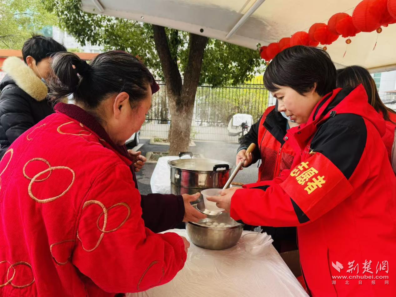 熱氣騰騰的湯圓被分發(fā)給現(xiàn)場居民。通訊員供圖