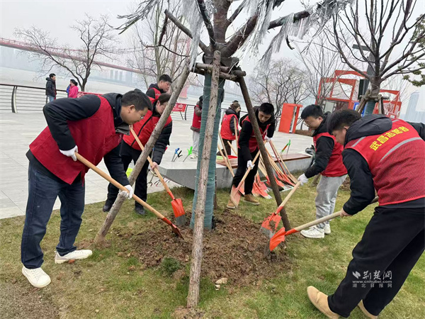 理論學(xué)習(xí)終要落地于實踐行動。宣講結(jié)束后,志愿者們手持夾鉗、垃圾袋等工具,對長江岸邊的垃圾、雜草及水面漂浮物開展地毯式清理,不放過任何衛(wèi)生死角,用雙手讓雜亂的灘涂恢復(fù)整潔開闊。恰逢植樹節(jié)將至,志愿者們又揮鍬鏟土、扶苗圍堰、提水澆灌,在指定區(qū)域有序栽種新苗,為長江岸線增添一抹新綠,以實際行動厚植生態(tài)底色,踐行綠色發(fā)展理念。