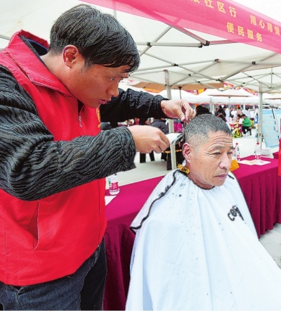便民服務(wù)區(qū)升騰著最撫慰人心的“煙火氣”。宋忠橋志愿服務(wù)隊的理發(fā)攤位前,居民有序排隊。剛理完發(fā)的劉大爺對著鏡子照了又照,滿意地說:“姜城師傅的手藝,很贊!”