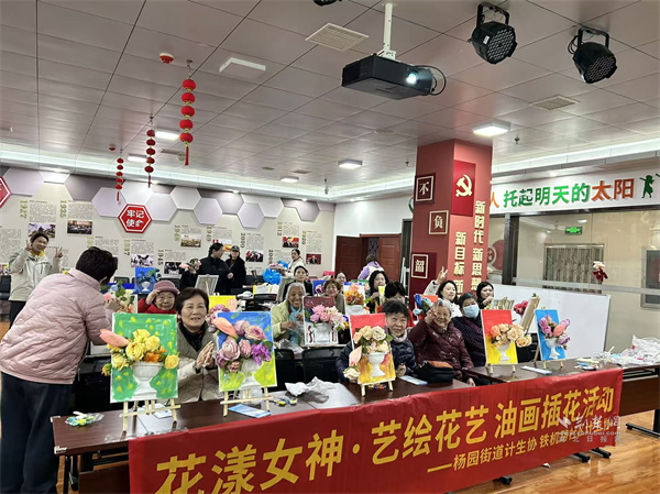 活動(dòng)現(xiàn)場(chǎng),長(zhǎng)桌上整齊擺放著畫布、油彩、花材等材料。啟晨便民服務(wù)中心專業(yè)老師細(xì)致講解油畫色彩搭配、筆觸運(yùn)用技巧,手把手指導(dǎo)花材修剪、造型搭配要領(lǐng),耐心解答大家的創(chuàng)作疑問(wèn)。居民們興致盎然,或蘸取油彩在畫布上揮灑創(chuàng)意,暈染出五彩斑斕的專屬畫作;或?qū)W⑿藜艋ㄖ?、搭配層次,一束束生機(jī)盎然的花藝作品接連成型,鄰里間相互交流心得、分享技巧,現(xiàn)場(chǎng)笑語(yǔ)不斷。