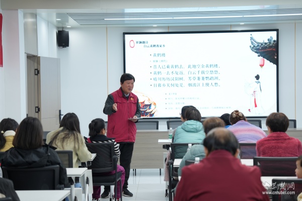 活動中,來自黃鶴樓公園的詩詞志愿者用生動通俗的語言將深?yuàn)W的古典詩詞與城市文化娓娓道來。從崔顥的千古絕唱,到李白“煙花三月下?lián)P州”的灑脫飄逸;從歷代文人墨客登樓賦詩的文壇佳話,到黃鶴樓屢毀屢建所見證的城市變遷,志愿者將詩詞典故與武漢的城市發(fā)展、人文精神巧妙串聯(lián)。居民們凝神聆聽,時(shí)而點(diǎn)頭會意,時(shí)而低聲交流,仿佛穿越千年,與古人隔空對話。