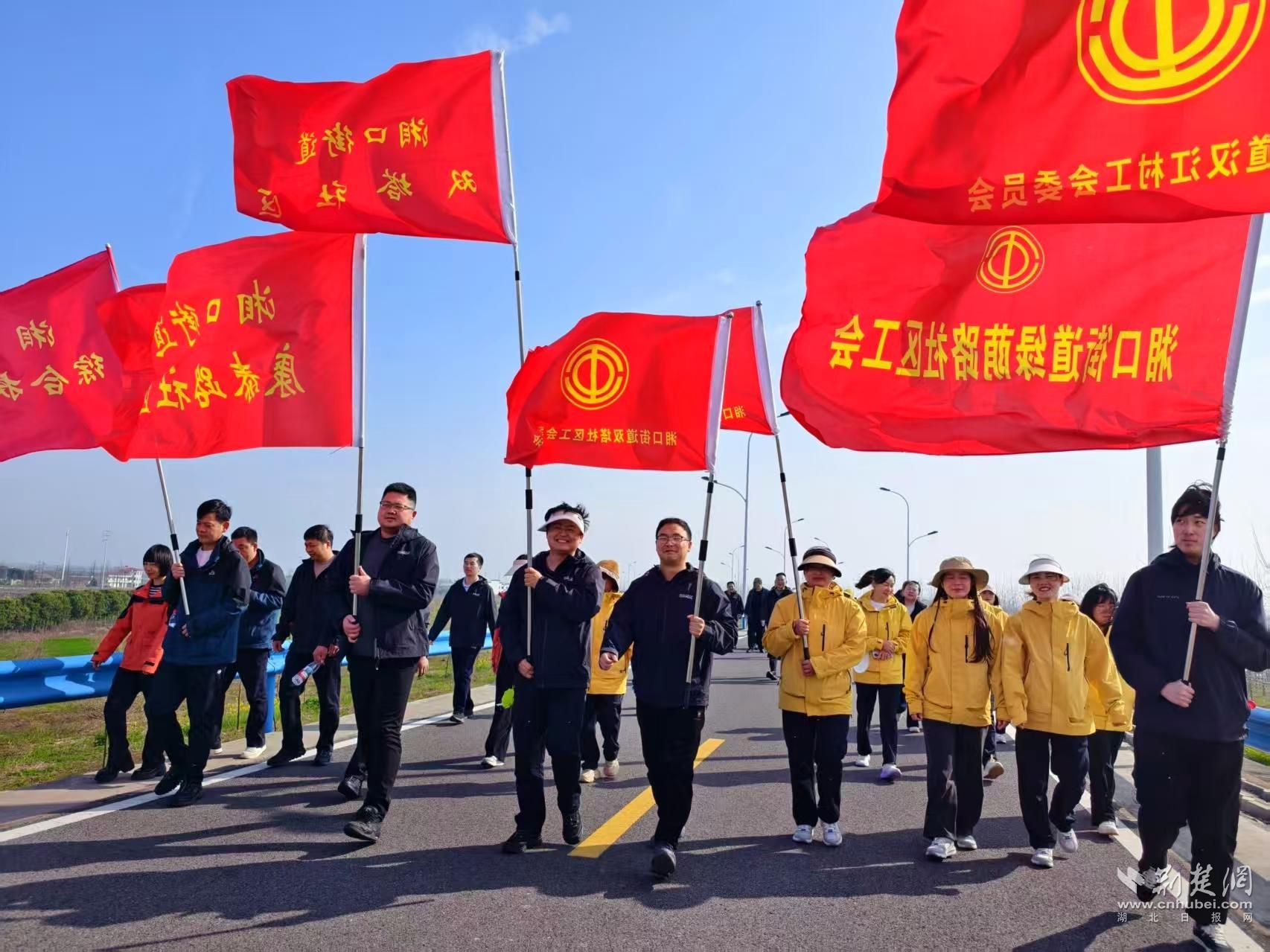 上午9時(shí)整,一聲清脆的鳴槍劃破晴空,健步走活動正式拉開序幕!全體職工精神抖擻、意氣風(fēng)發(fā),身著統(tǒng)一的運(yùn)動裝,從喜鵲湖有序上堤,向著大垸子閘奮勇前行。腳下,是蜿蜒整潔、風(fēng)景如畫的喜鵲湖最美鄉(xiāng)村公路;身旁,是柳綠花紅、生機(jī)盎然的田園盛景;耳畔,是同事間的歡聲笑語與春日的鳥鳴啾啾。大家或并肩漫步、暢談心聲,或闊步前行、舒展筋骨,將工作的疲憊與壓力,盡數(shù)消散在這春風(fēng)拂面的愜意之中,沉浸式感受漢水之南的靈秀與壯闊。