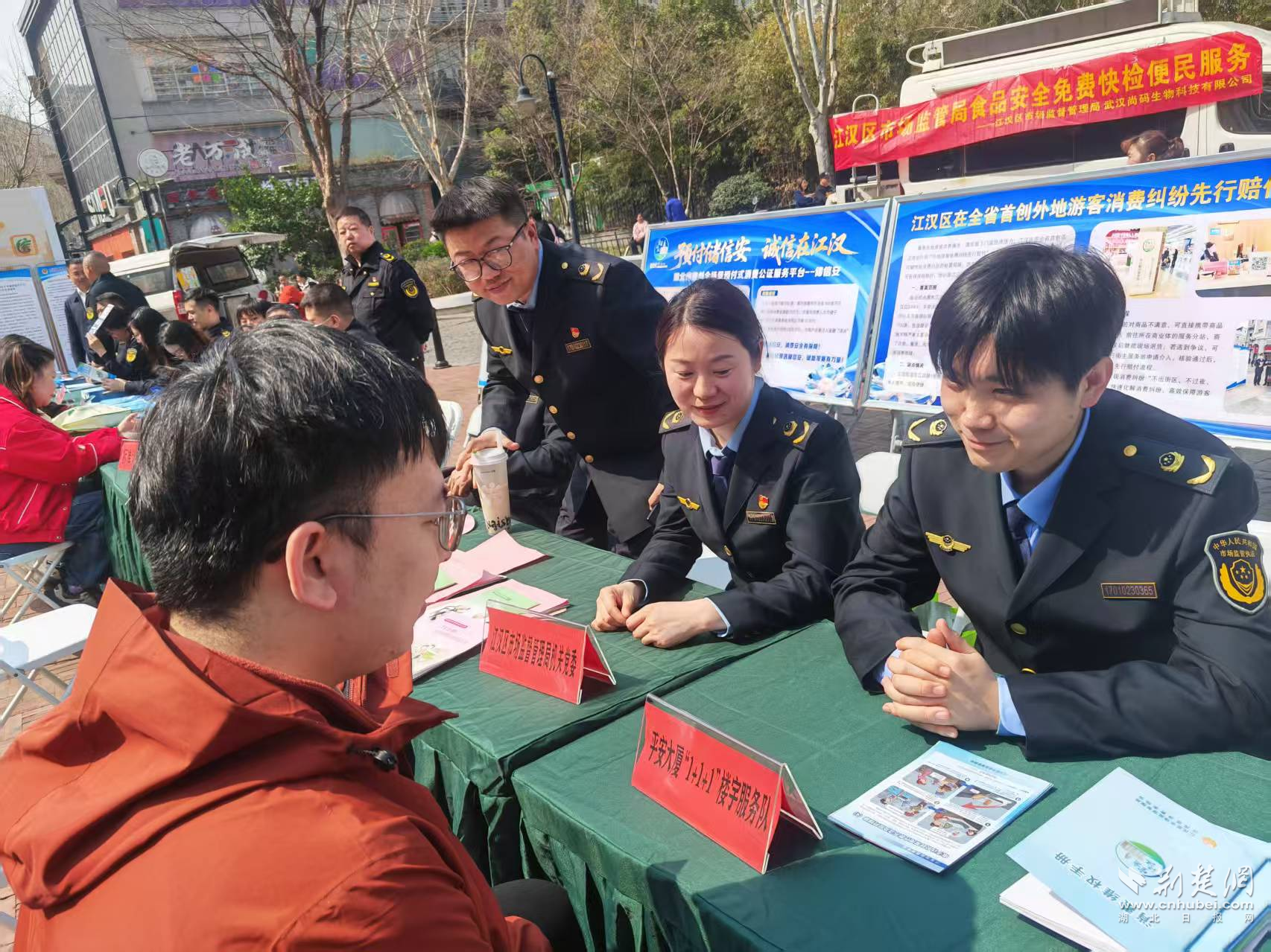荊楚網(wǎng)(湖北日報網(wǎng))訊(記者 何婧 通訊員 涂曉虹)“3·15”國際消費者權(quán)益日來臨之際,為切實維護(hù)消費者合法權(quán)益,充分發(fā)揮黨建引領(lǐng)作用,3月12日,江漢區(qū)市場監(jiān)督管理局聚焦群眾關(guān)心的消費熱點,在中山大道江漢路地鐵站G出口開展“提升消費品質(zhì)”主題宣傳服務(wù)活動,通過多部門聯(lián)動、黨員志愿服務(wù),把消費維權(quán)與民生服務(wù)送到群眾身邊。