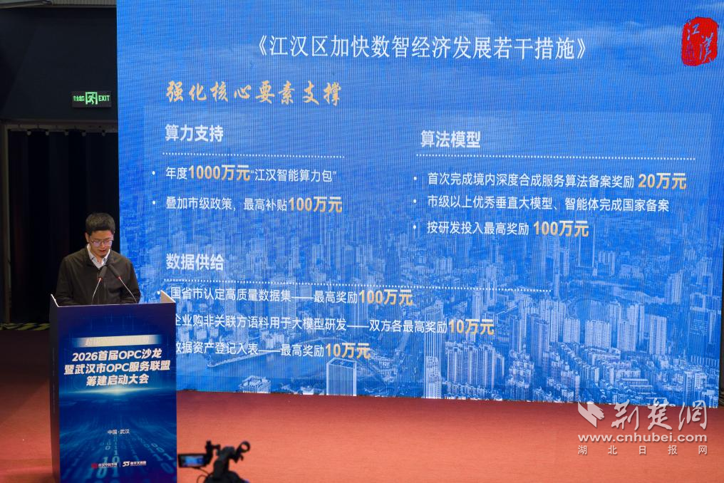 圍繞這一趨勢,政策支持體系同步發(fā)力。武漢市科技創(chuàng)新局現(xiàn)場解讀相關(guān)政策,從算力補(bǔ)貼、創(chuàng)業(yè)資助、免費(fèi)場地、金融支持等方面構(gòu)建全鏈條保障體系。江漢區(qū)同步解讀數(shù)智經(jīng)濟(jì)及OPC創(chuàng)新創(chuàng)業(yè)支持政策,聚力打造武漢首個(gè)“OPC生態(tài)城區(qū)”,創(chuàng)新構(gòu)建“1+6+N”保障體系,即1個(gè)綜合服務(wù)平臺(tái)、6類核心要素零門檻供給、N個(gè)分布式創(chuàng)新節(jié)點(diǎn),加快形成低成本、高效率的創(chuàng)新創(chuàng)業(yè)環(huán)境。