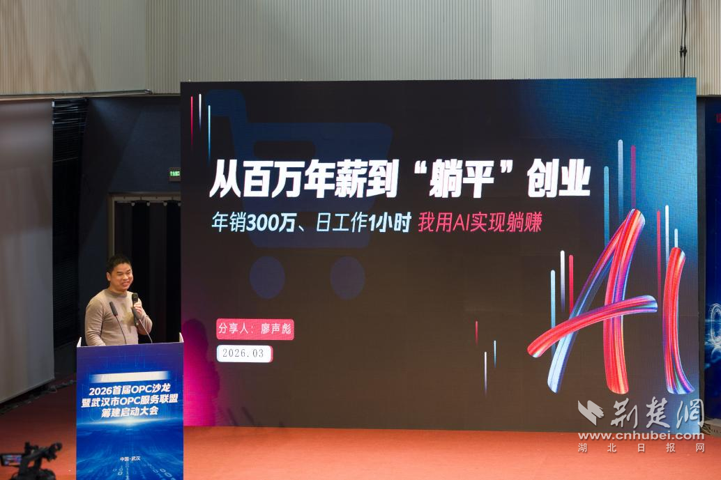 活動(dòng)現(xiàn)場,創(chuàng)業(yè)者分享環(huán)節(jié)成為一大亮點(diǎn)。36歲的創(chuàng)業(yè)者廖聲彪帶著自己的創(chuàng)業(yè)故事登臺(tái),言語樸實(shí)卻充滿力量。他向現(xiàn)場觀眾分享了自己的創(chuàng)業(yè)歷程:從擁有百萬年薪的職場人,毅然轉(zhuǎn)型選擇“躺平式”創(chuàng)業(yè),如今他的項(xiàng)目年銷售額已達(dá)300萬,每天僅需工作1小時(shí),憑借AI技術(shù)成功實(shí)現(xiàn)了“躺賺”的創(chuàng)業(yè)愿景。此外,他還現(xiàn)場表示,下半年將從杭州回到武漢,開啟一人公司的創(chuàng)業(yè)模式,扎根江城這片科創(chuàng)沃土,為武漢OPC產(chǎn)業(yè)發(fā)展貢獻(xiàn)力量。
