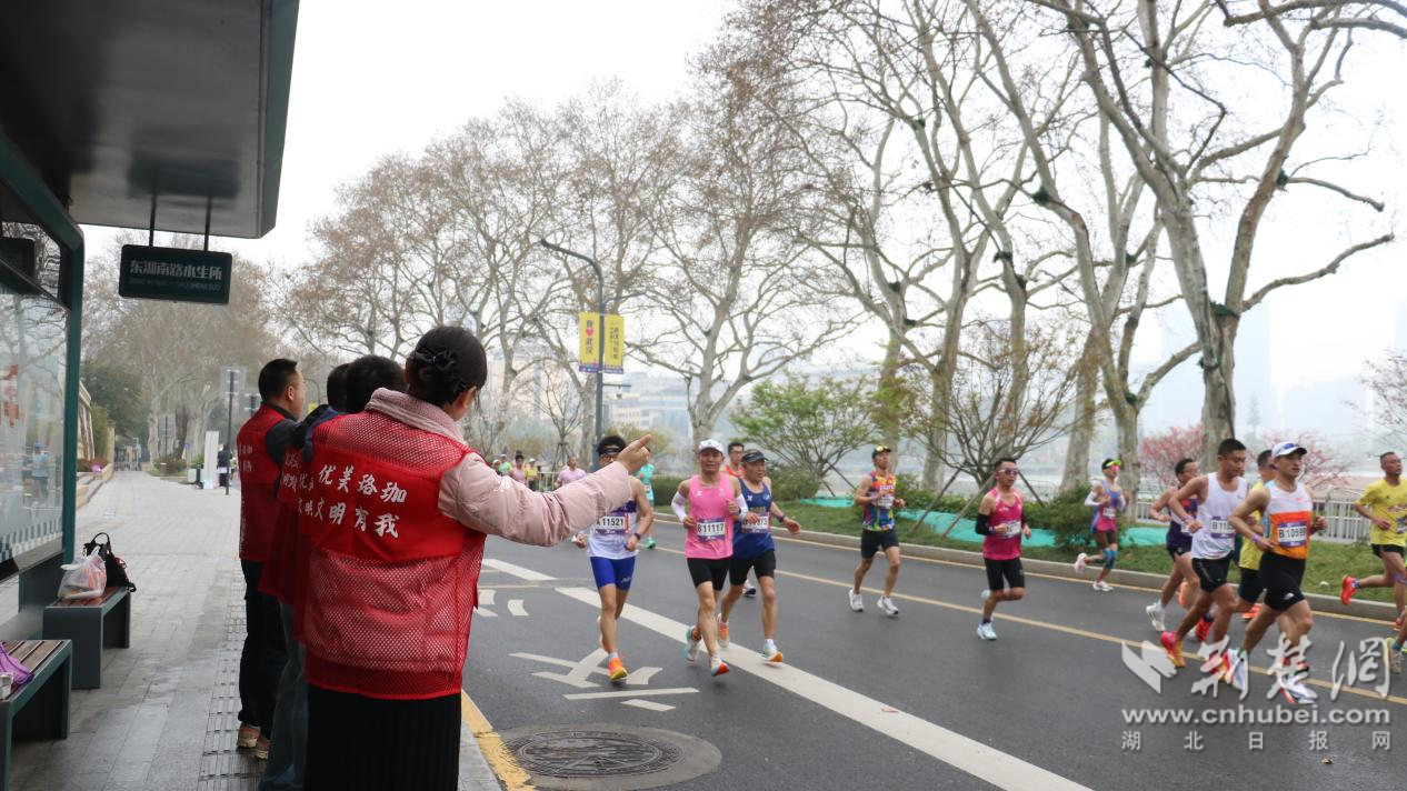 “加油!加油!”“你們是最棒的!”……當(dāng)天,位于賽道沿線的中國(guó)科學(xué)院水生生物研究所自發(fā)組織了“助威團(tuán)”??蒲腥藛T們暫時(shí)放下手中的顯微鏡,揮舞著彩旗和手舉牌,用最熱烈的吶喊為中外跑者加油鼓勁,將嚴(yán)謹(jǐn)科研之外的澎湃熱情灑滿賽道。除了吶喊助威,轄區(qū)共建單位還貼心地設(shè)置了“愛心補(bǔ)給站”,為跑者提供飲用水、水果等補(bǔ)給物資,不僅為選手們“充電”,更讓這場(chǎng)國(guó)際賽事充滿了“珞珈溫度”。