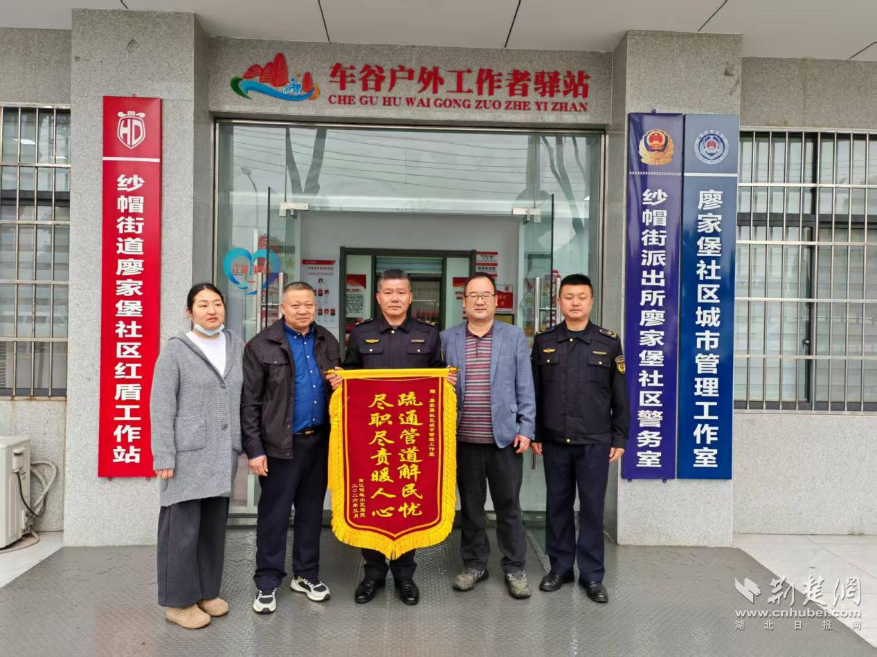 值得一提的是,3月30日,紗帽街道綜合執(zhí)法中心與環(huán)衛(wèi)中心還及時解決了南江明珠小區(qū)下水道堵塞難題,為居民排憂解難。3月31日,當(dāng)執(zhí)法隊員燃氣檢查后返回廖家堡社區(qū)城管工作室時,南江明珠小區(qū)居民代表特意送來一面寫有“盡職盡責(zé)暖人心 疏通管道解民憂”的錦旗,表達感激之情。