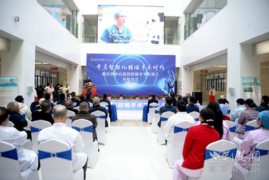黃石市衛(wèi)生健康委主任嚴(yán)定方在開機(jī)儀式上講話,他說,今天滿懷喜悅與期待共同見證黃石市首臺腔鏡手術(shù)機(jī)器人開機(jī),向黃石市中心醫(yī)院正式啟用腔鏡手術(shù)機(jī)器人表示熱烈祝賀,這標(biāo)志著黃石市在醫(yī)療技術(shù)創(chuàng)新領(lǐng)域邁出了堅(jiān)實(shí)而重要的一步,也為提升區(qū)域醫(yī)療服務(wù)水平注入了新的強(qiáng)大動力。
