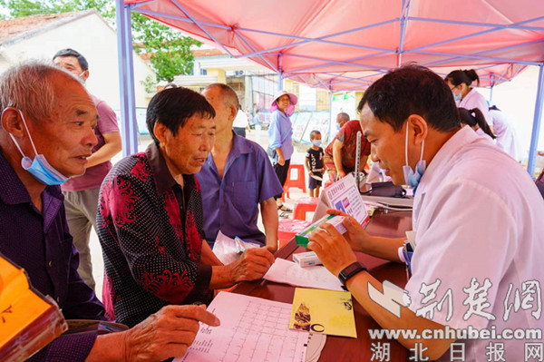 謳樂社區(qū)區(qū)位特殊,距宜城有2個小時車程,距流水鎮(zhèn)衛(wèi)生院有1個小時車程。當日,40多名醫(yī)護人員共為1200余村民把脈、問診、開藥、治療。