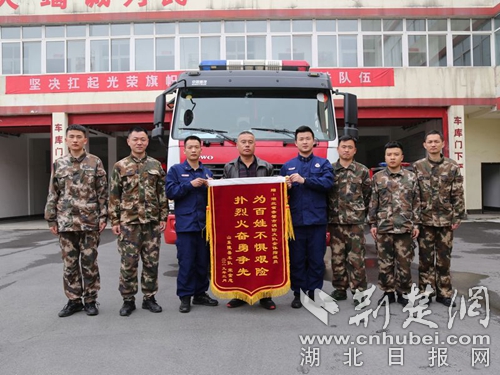 荊楚網(wǎng)客戶端-荊楚網(wǎng)消息(通訊員 朱燕林 徐聰)近日,山東陵縣車隊的車隊代表宋金忠先生不遠(yuǎn)千里來到湖北省咸寧赤壁市消防大隊,將一面印有“為百姓不懼艱險,撲烈火奮勇爭先”的錦旗親手送到消防指戰(zhàn)員的手上,專程感謝消防指戰(zhàn)員于3月3日在京港澳高速湖北赤壁收費站高速出口處奮力撲滅他貨車起火的感激之情,并向辛勤奮戰(zhàn)在防、滅火第一線的全體消防指戰(zhàn)員表示崇高的敬意。