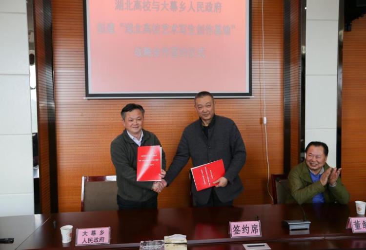 當(dāng)日,15所高校藝術(shù)(美術(shù))學(xué)院的負(fù)責(zé)人分別與咸安區(qū)大幕鄉(xiāng)政府簽訂了創(chuàng)建“湖北高校藝術(shù)寫生創(chuàng)作基地”戰(zhàn)略合作協(xié)議。