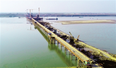 建設中的赤壁長江大橋