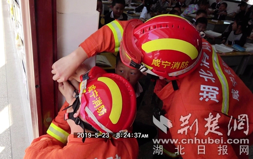 荊楚網(wǎng)客戶端-荊楚網(wǎng)消息(通訊員 朱燕林)5月23日,咸寧市泉塘小學有學生手卡門栓,接警后,溫泉消防大隊三號橋執(zhí)勤站迅速出動1輛消防車、6名消防員趕赴現(xiàn)場處置。