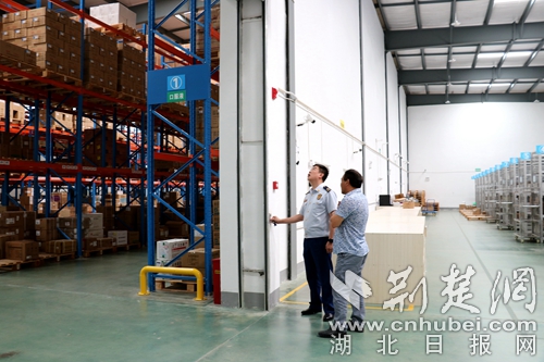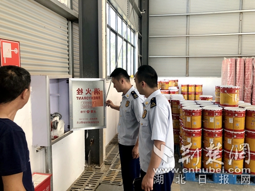 圖為消防執(zhí)法人員檢查倉(cāng)儲(chǔ)消防設(shè)施現(xiàn)場(chǎng)。 阮子祥攝