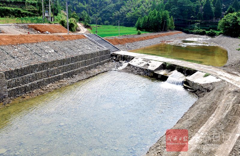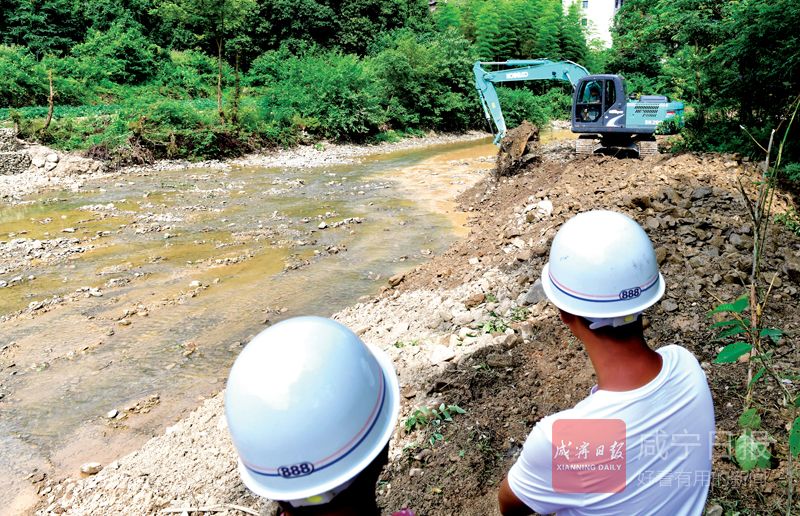 12日,崇陽縣白霓鎮(zhèn)河田港紙棚村段,大型挖掘機正在疏浚河堤護坡。
