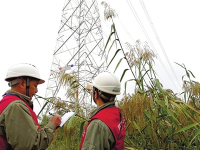 10月16日,國網(wǎng)咸寧供電公司黨員突擊隊(duì)成員劉亮、鄭先華在武漢軍運(yùn)會保電現(xiàn)場進(jìn)行防外破巡視。 通訊員 張涵 曹露 攝