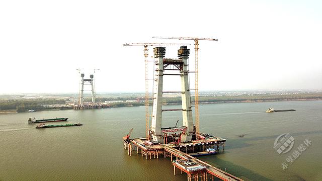▲赤壁長江大橋建設現(xiàn)狀
