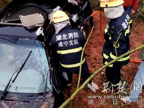 荊楚網(wǎng)消息(通訊員 朱燕林 朱濤)3月28日11時(shí)4分,湖北省咸寧市通山縣大畈鎮(zhèn)隱水洞附近貨車與小車相撞2人被困,接警后,通山縣消防中隊(duì)出動(dòng)1輛消防車、7名消防員趕赴現(xiàn)場救援。