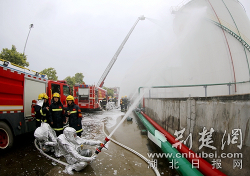 圖為消防員處置化工災(zāi)害事故應(yīng)急演練現(xiàn)場(chǎng)。通訊員朱燕林?jǐn)z